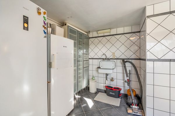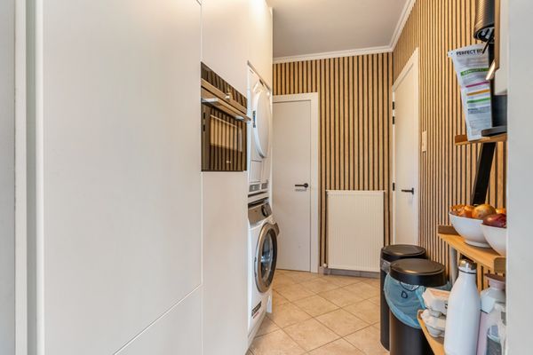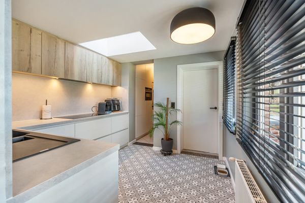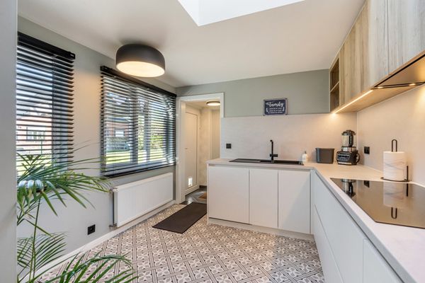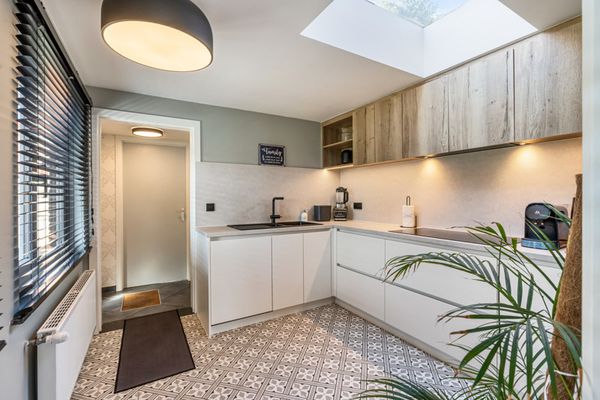 Via de achterdeur kan je naar het (overdekt) terras.