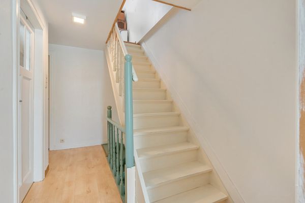 Verdieping: nachthal; toiletruimte met lavabo; 3 slaapkamers waarvan de kleinste nu gebruikt wordt als dressing.